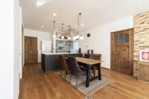玄関や外壁を印象的に整えることは大切ですが、家の中に入った瞬間に雰囲気が切り替わってしまうと、ちぐはぐな印象になります。外観と内装は別々に考えるのではなく、色・素材・金物・照明のテイストをゆるやかにつなげることが重要です。